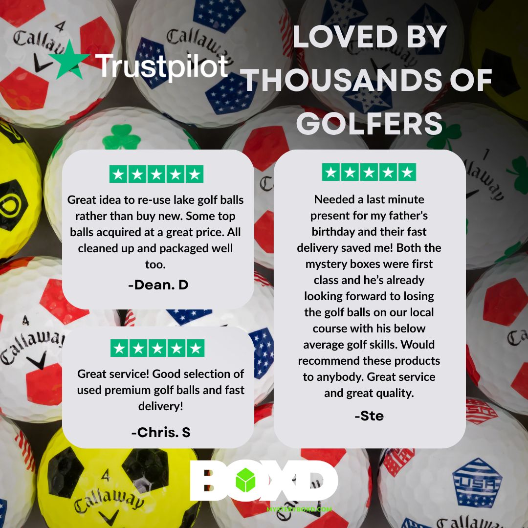 Each ball is washed and then sorted by hand and inspected for quality. We then package up a mixture of big brands only for our Mystery BOXD customers giving a wide variety of brands and premium styles.