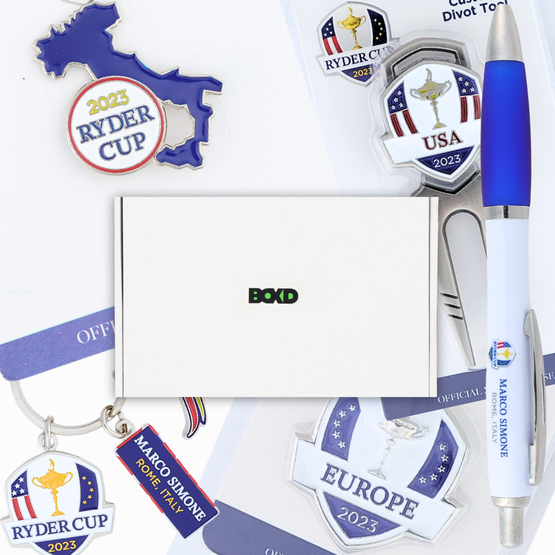 Five high-quality golf accessories from leading brands, chosen for golfers who value style and performance. Each box includes a golf badge, keyring, divot tool, ball marker and golf pen.
