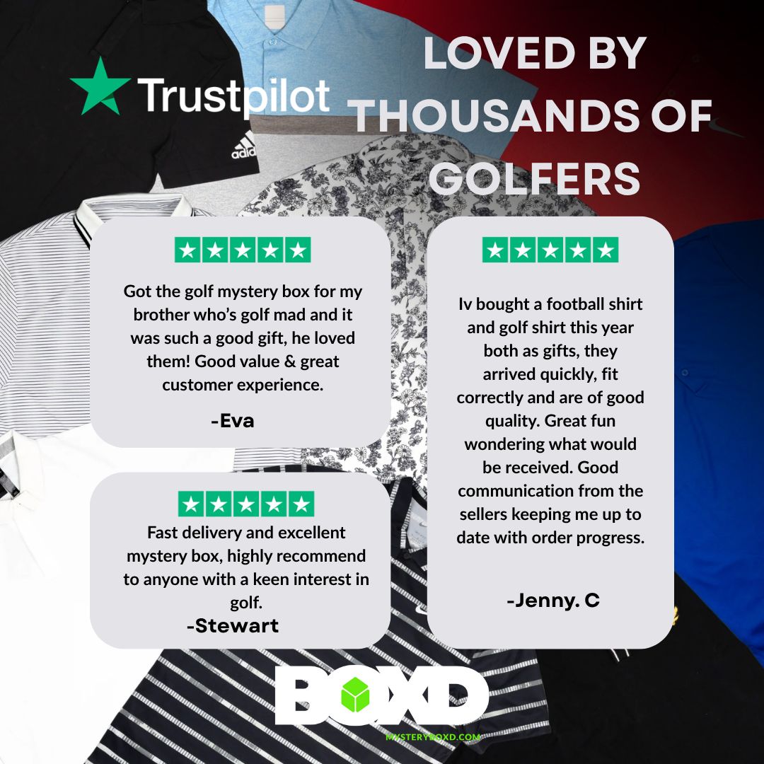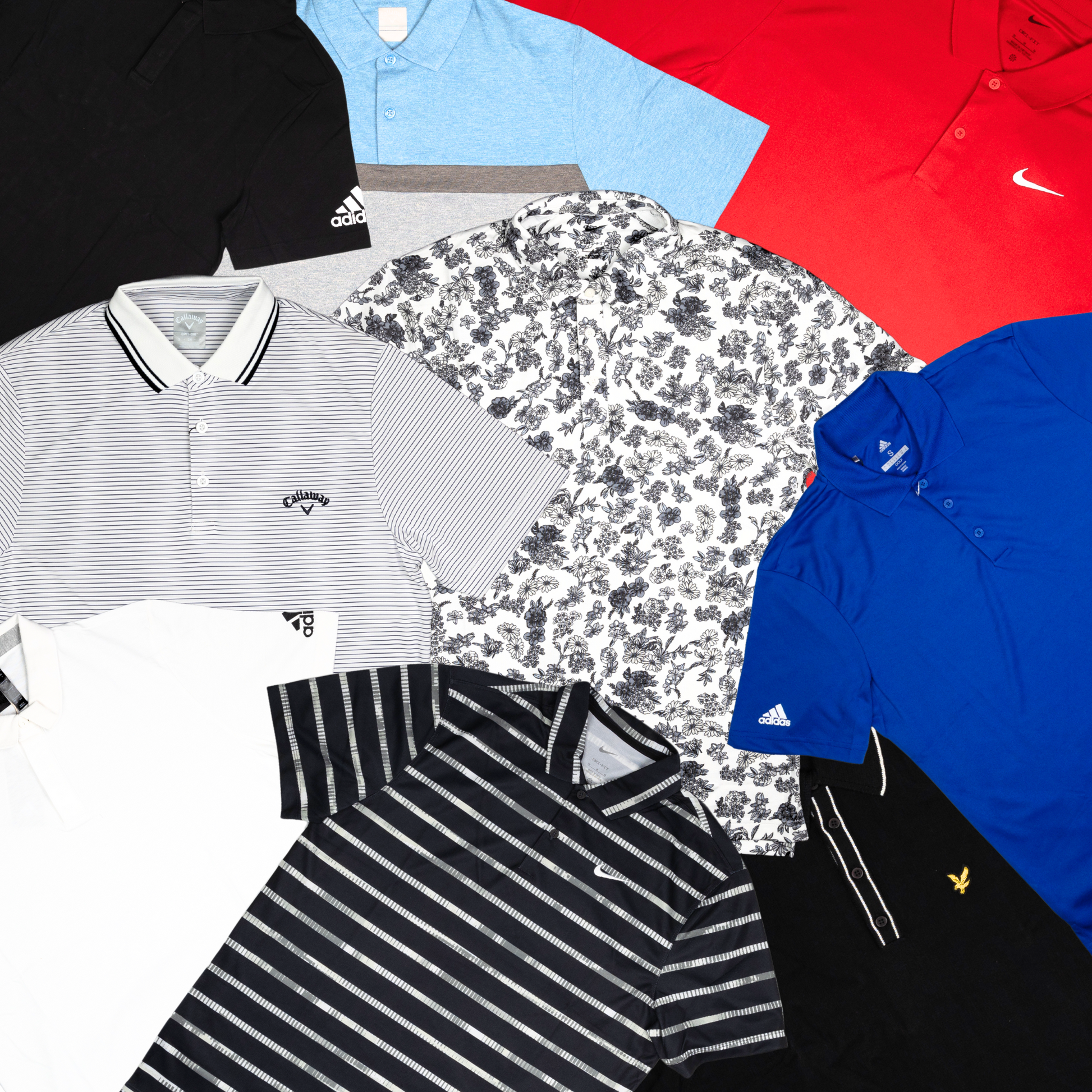 One brand new, 100% authentic golf polo shirt from top brands like Nike, Adidas, Callaway, Ryder Cup and more. The brand and style stay a mystery until it arrives—adding excitement to every box.