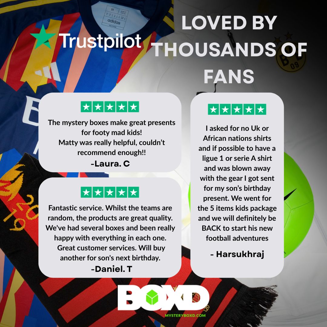 Our customers get a high-quality football mystery box for a fraction of the retail price — packed with surprise shirts and great value. It’s a fun, sustainable way to shop, and makes a brilliant gift for football fans of all ages.